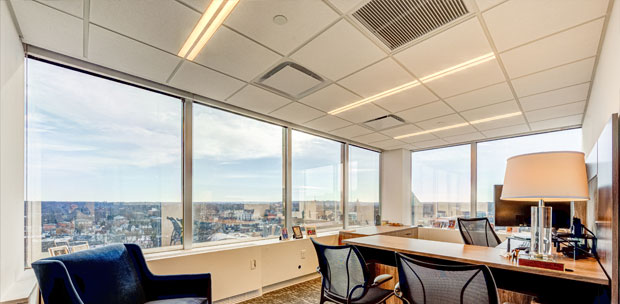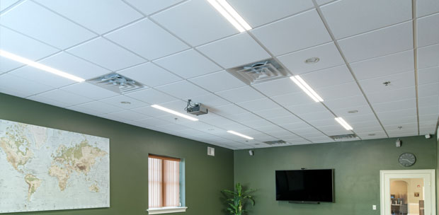Low profile design leaves plenum completely unoccupied, helps coordination of other ceiling utilities