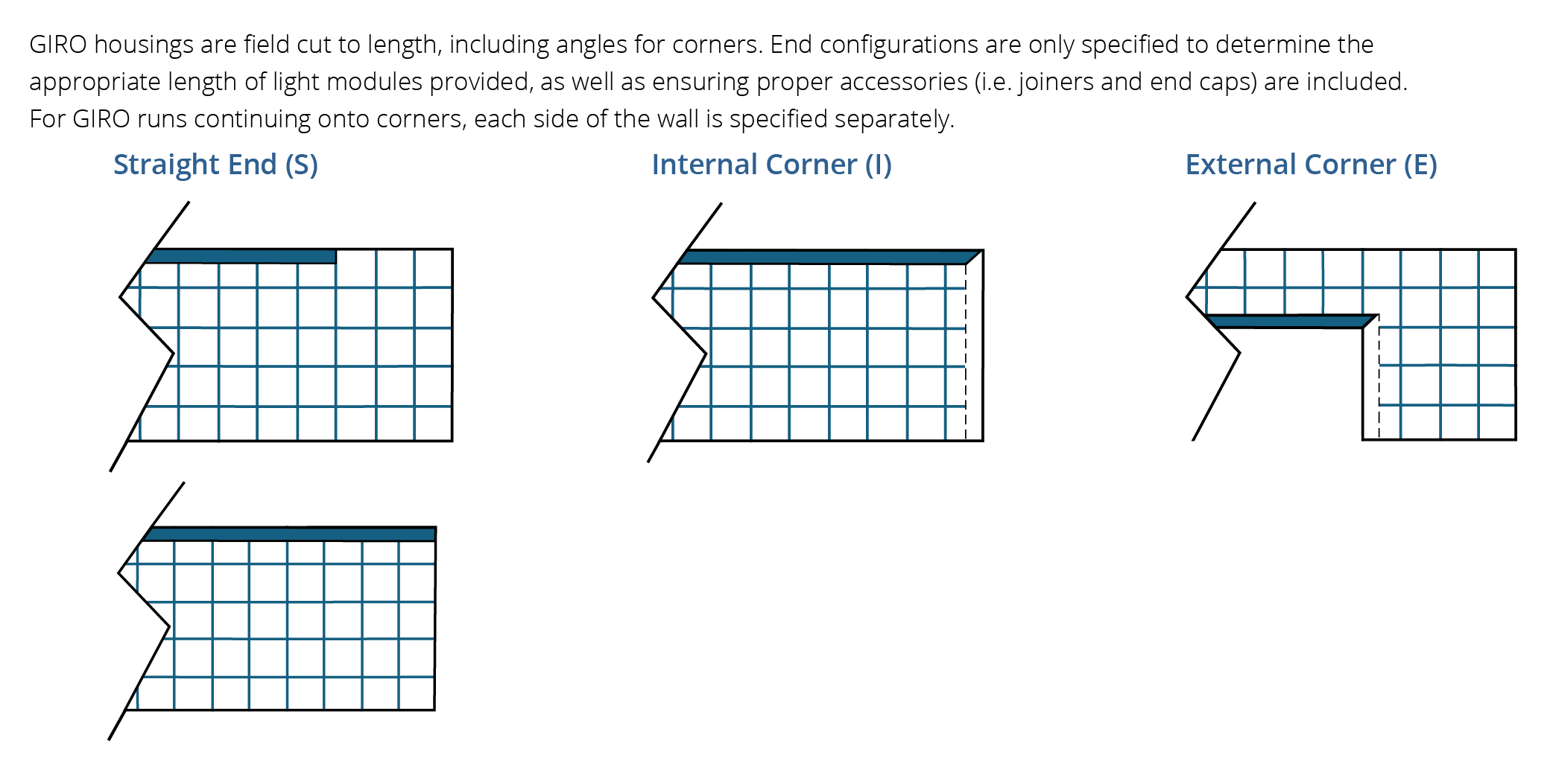 SI = When a linear run continues onto another run on an inside corner on one end, and the other end stops.