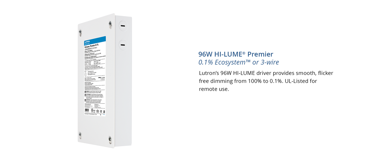 Remote Lutron Hi-Lume Premier driver with Universal 120-277VAC Input and Class 2 24VDC 96W Output