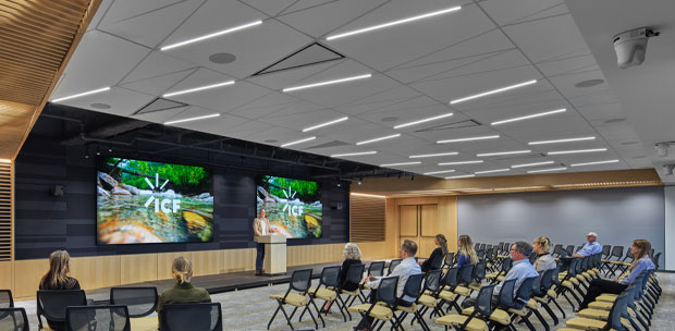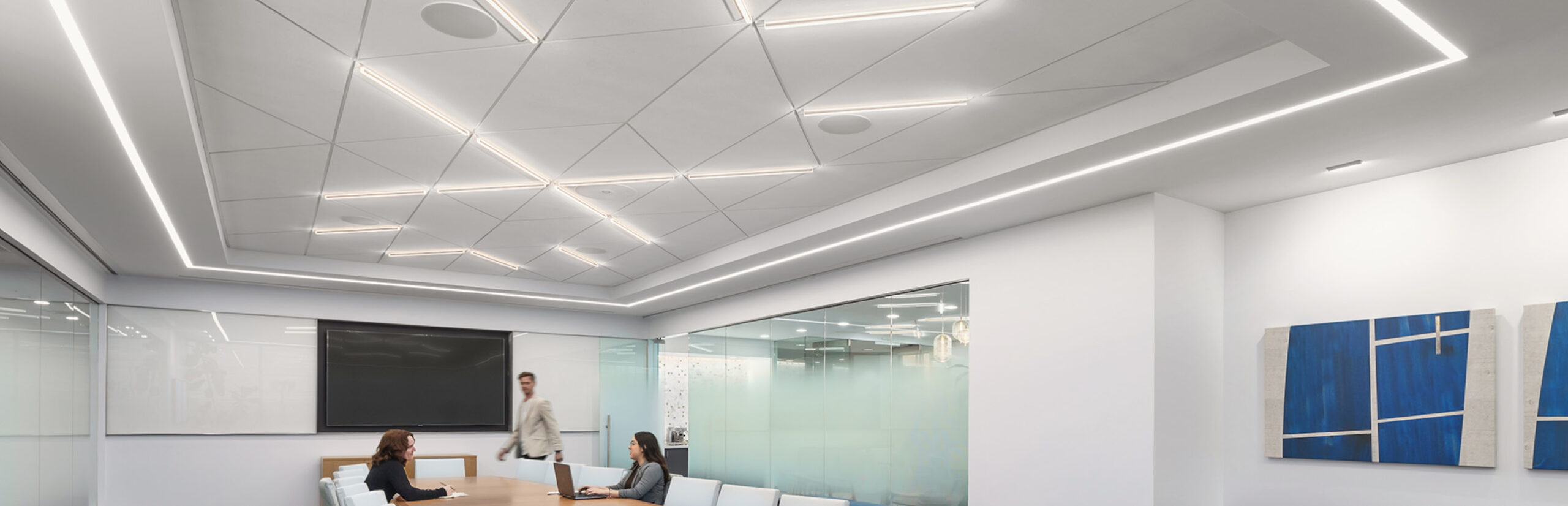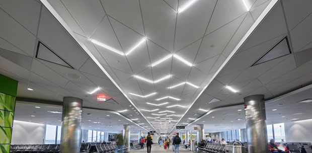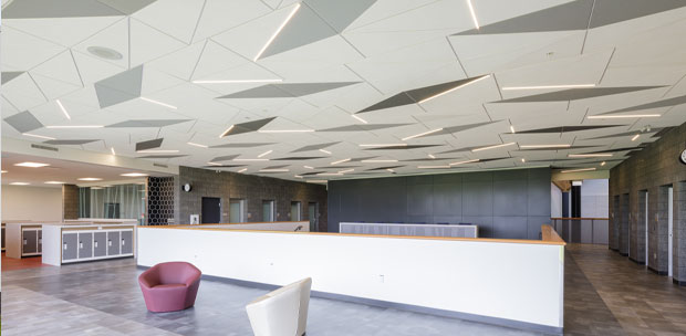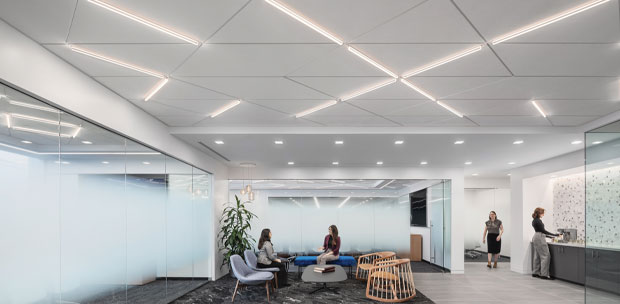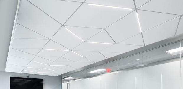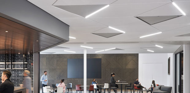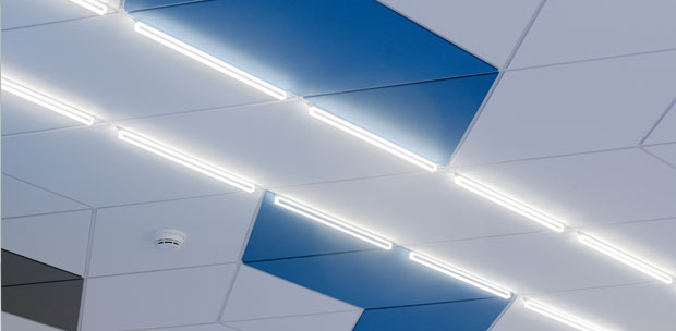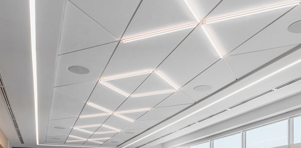 Lights occupy the grid only, optimizing the ceiling's ability to enhance occupant well-being