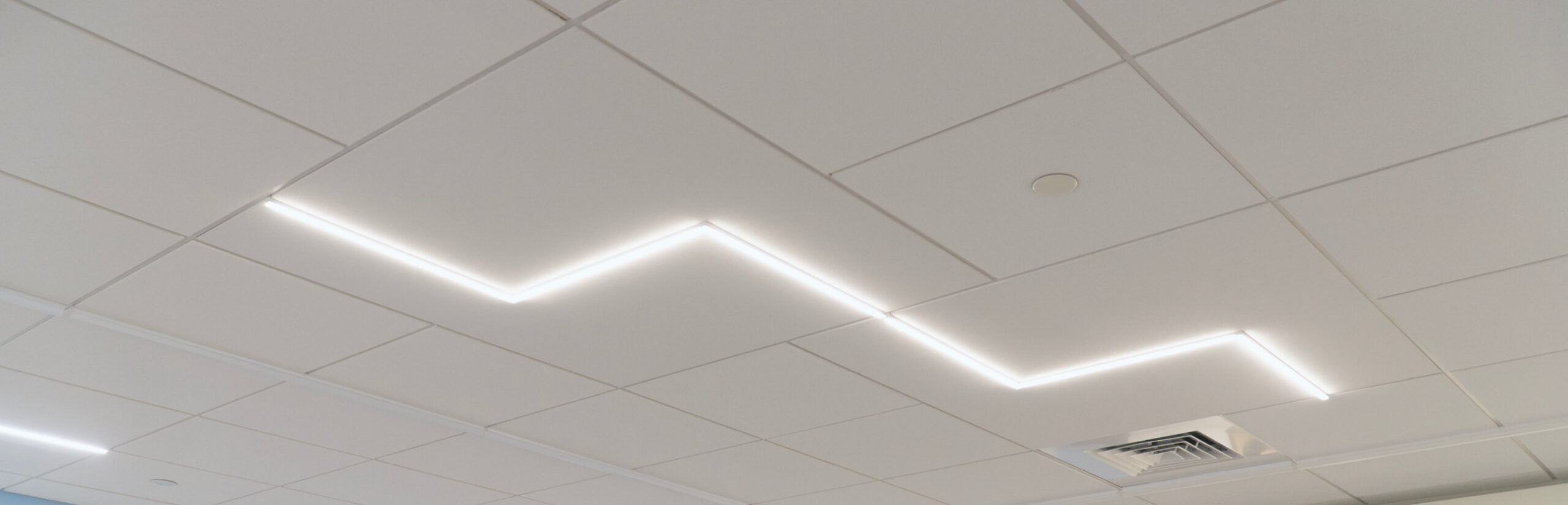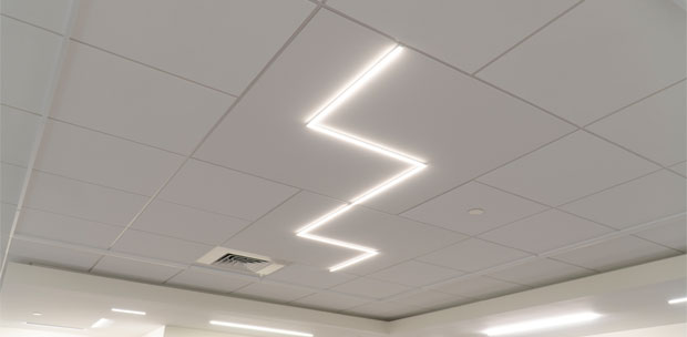 Lights directly replace the DesignStackz ceiling grid, becoming a structurally integrated component, optimizing the ceiling’s functions of enhancing occupant well-being.