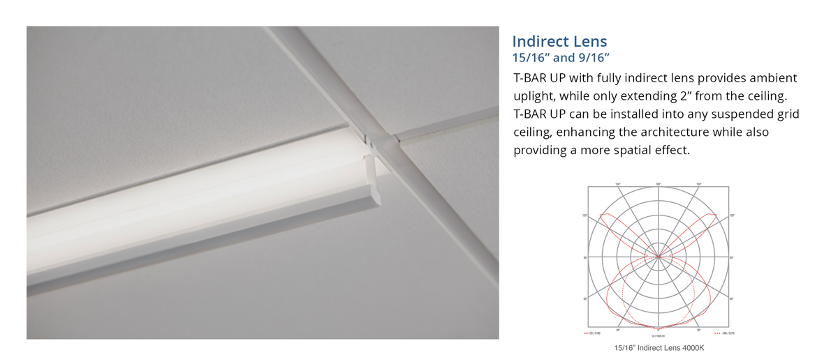 T-BAR UP offers indirect linear lighting protruding only 2” from the ceiling that replaces the 9/16” or 15/16” ceiling grid, becoming a structurally integrated component, optimizing the ceiling’s functions of enhancing occupant well-being.