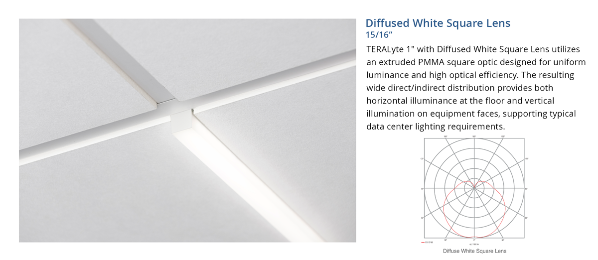 High efficiency LED fixture designed specifically for integration into 15/16” suspension systems used in Data Center and other critical infrastructure environments